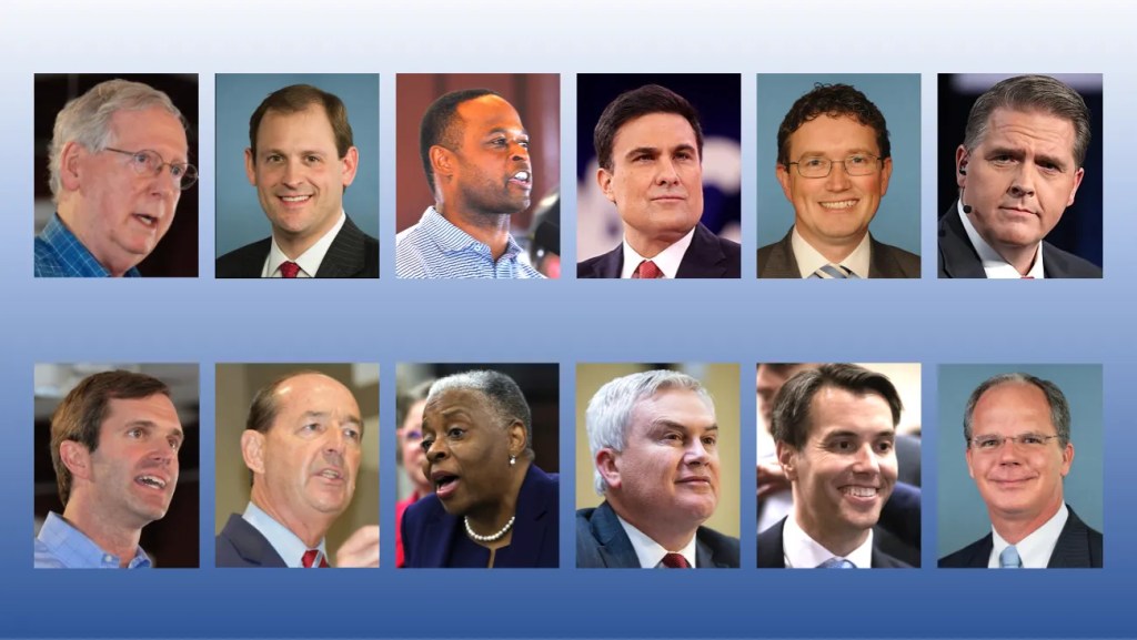 (left to right, top to bottom) Mitch McConnell; Andy Barr; Daniel Cameron; Nate Morris; Thomas Massie; Scott Jennings; Andy Beshear; Rocky Adkins; Pam Stevenson; James Comer; Morgan McGarvey; Brett Guthrie