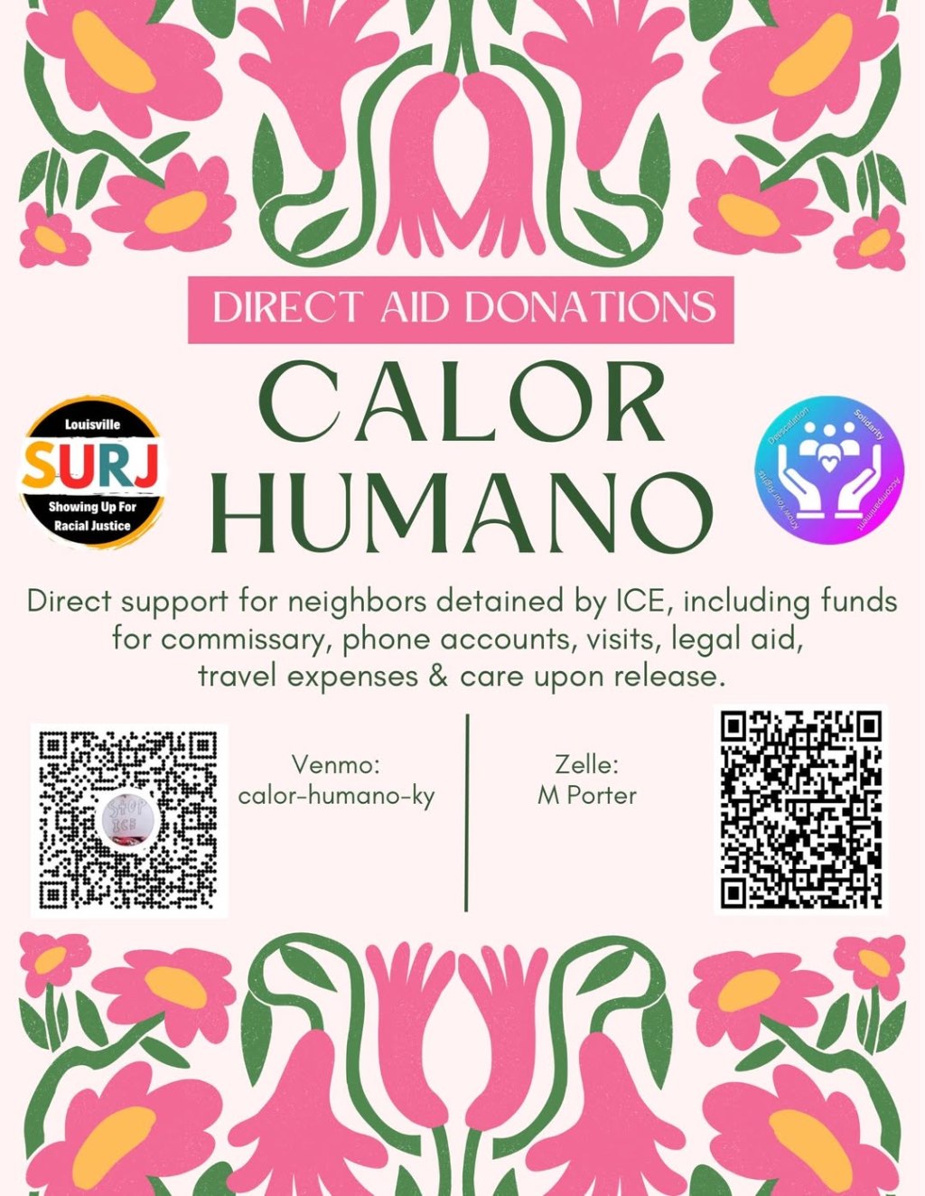 Often without a bed, given little regard to what language they speak, or what their dietary or religious needs are, they endure months in detention in truly isolating experiences. Calor Humano (an LSURJ project) provides support for these neighbors through commissary fund donations, phone account funds, volunteer visits, legal aid support, and transport & care when released. Together with your support, we can help them get through such dark experiences.